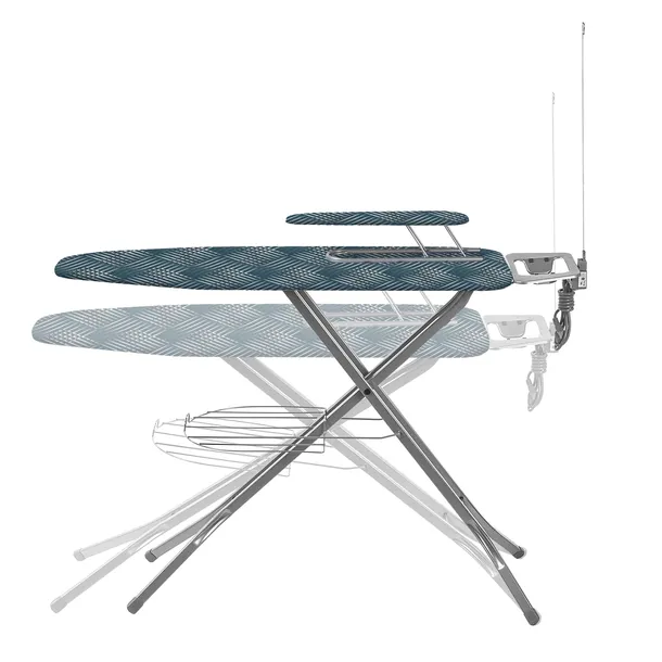 - antenka, blat z siatki metalowej, blokada rozkładania, gniazdo z przedłużaczem, płynna regulacja wysokości (PRW), podstawa na stację parową, podstawka pod żelazko, półka, system szybkiego składania i rozkładania (SSK)
